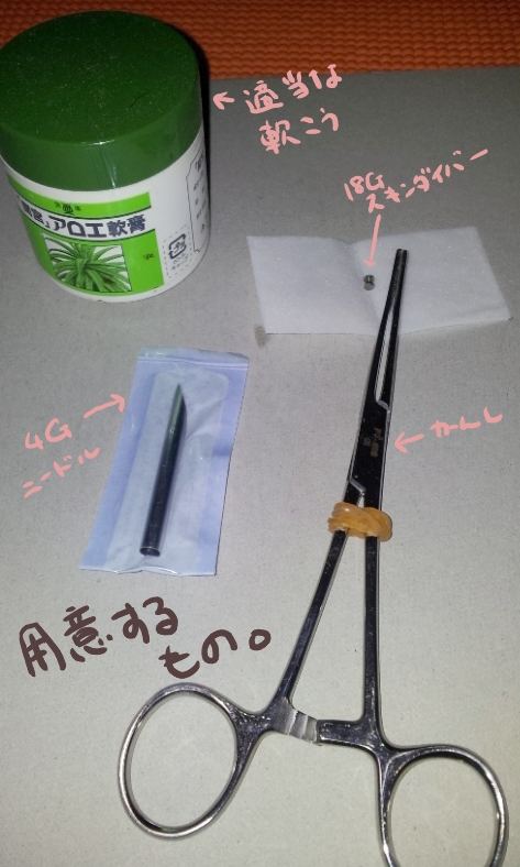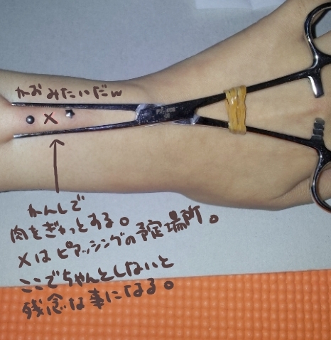 その中心にピアスを突っ込むっつう結構無茶な入れ方にチャレンジ!