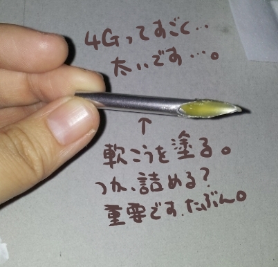 ニードルは余ってた4Gを使ってみた。因みに4Gの直径は5mm。