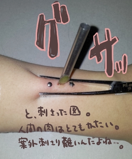 人間の皮膚って結構硬いんだよ。マジ。無意識の内に手加減してるのかしら…って思ってしまう位に刺さらん刺さらん。