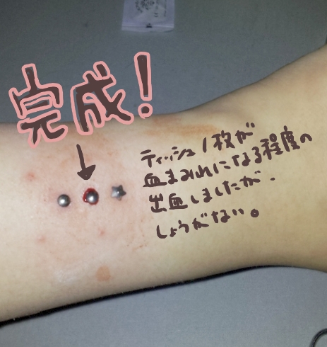 栓をするが如くに、傷口にピアス宛がってグイっと押すと思った以上にすんなり入った。