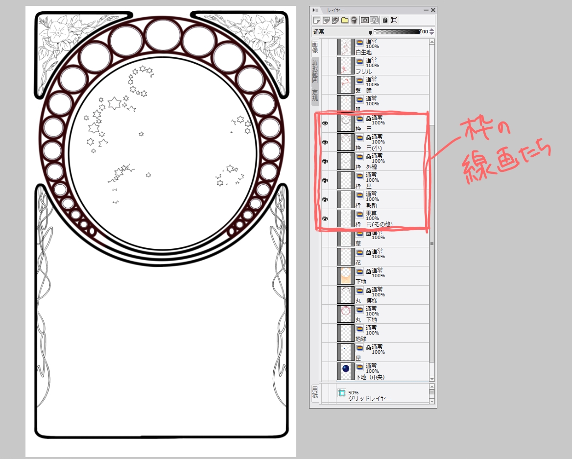 画像でうっかり線画も赤枠内に入っちゃってるけど気にしないw