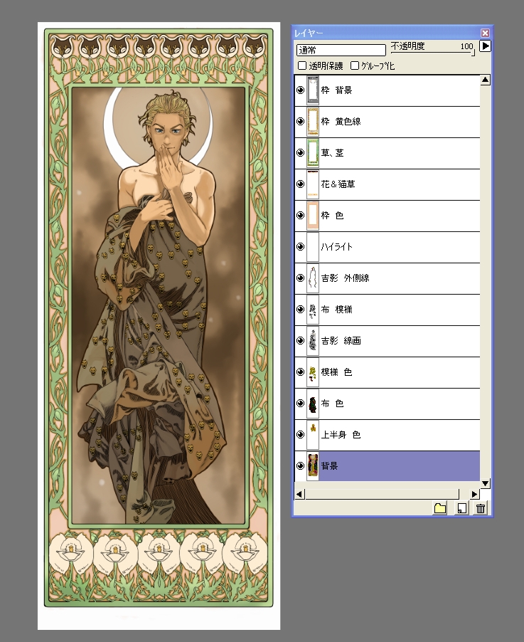 そう言えば、ミュシャのパロ絵で全部PCで描いたのコレが初めてでした。